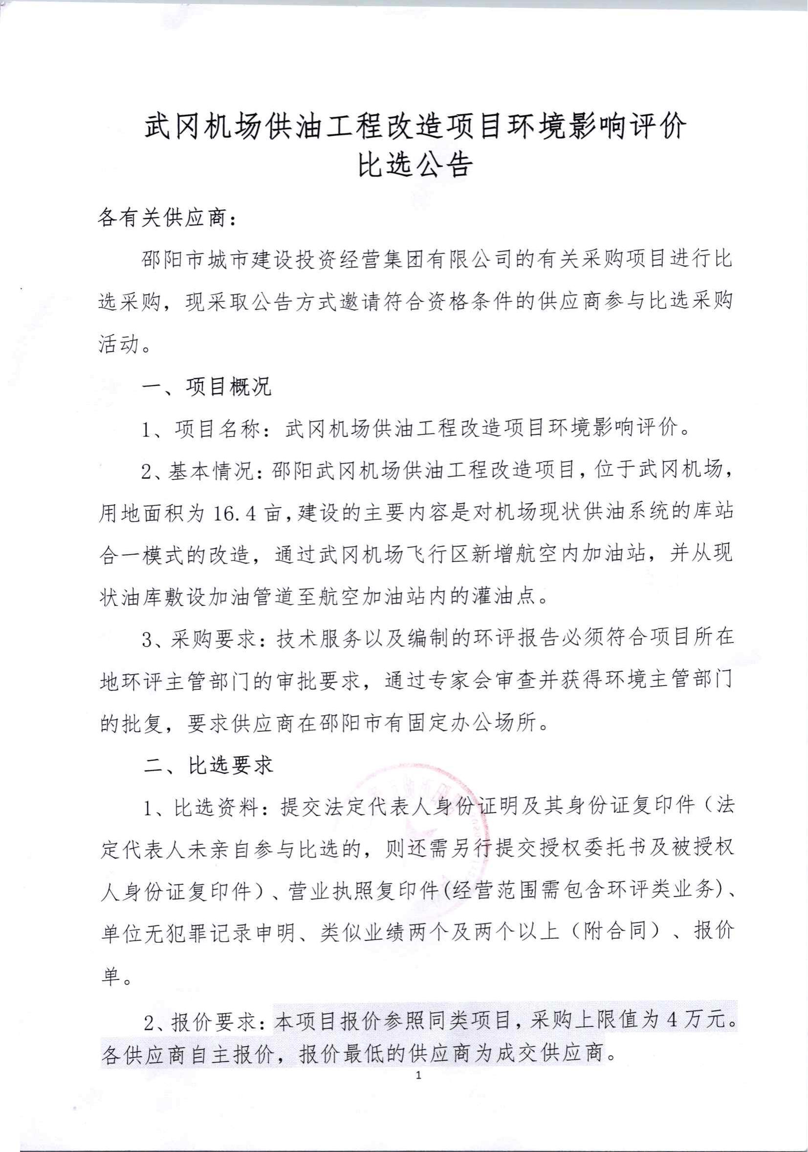 7.25比選公告武岡機場供油工程改造項目環(huán)境影響評價編制
