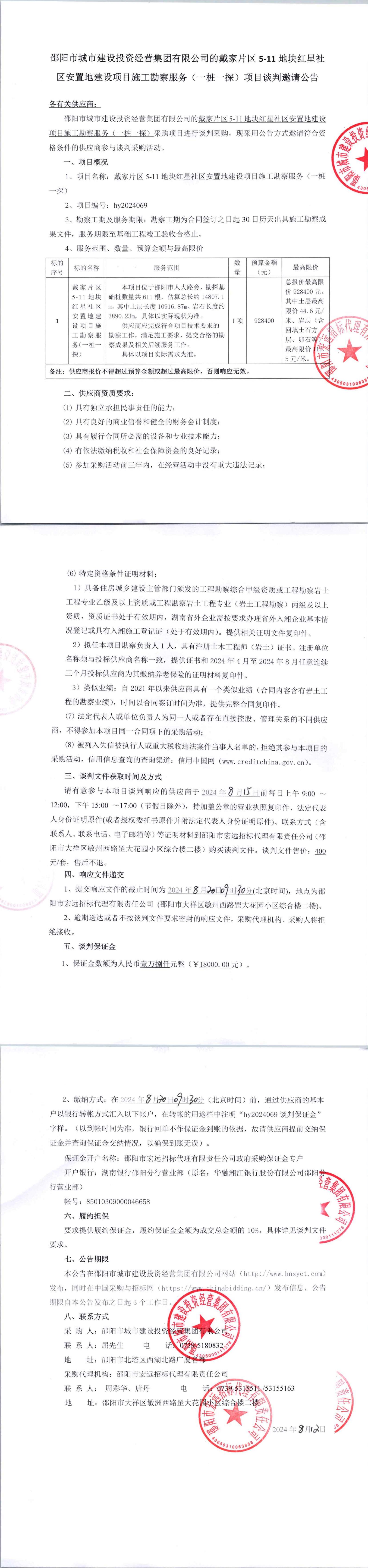 戴家片區(qū)5-11地塊紅星社區(qū)安置地建設(shè)項目施工勘察服務(wù)談判邀請公告