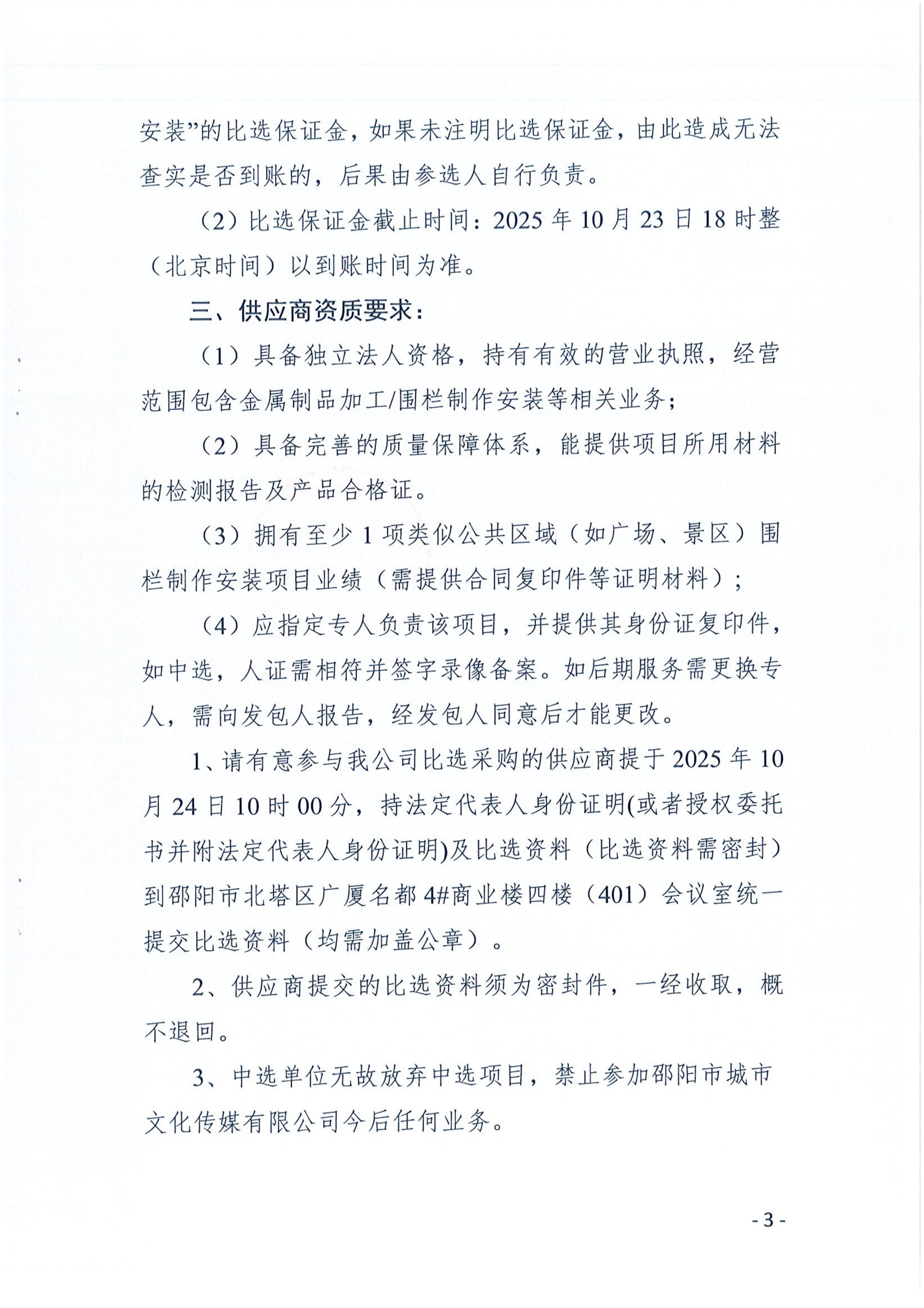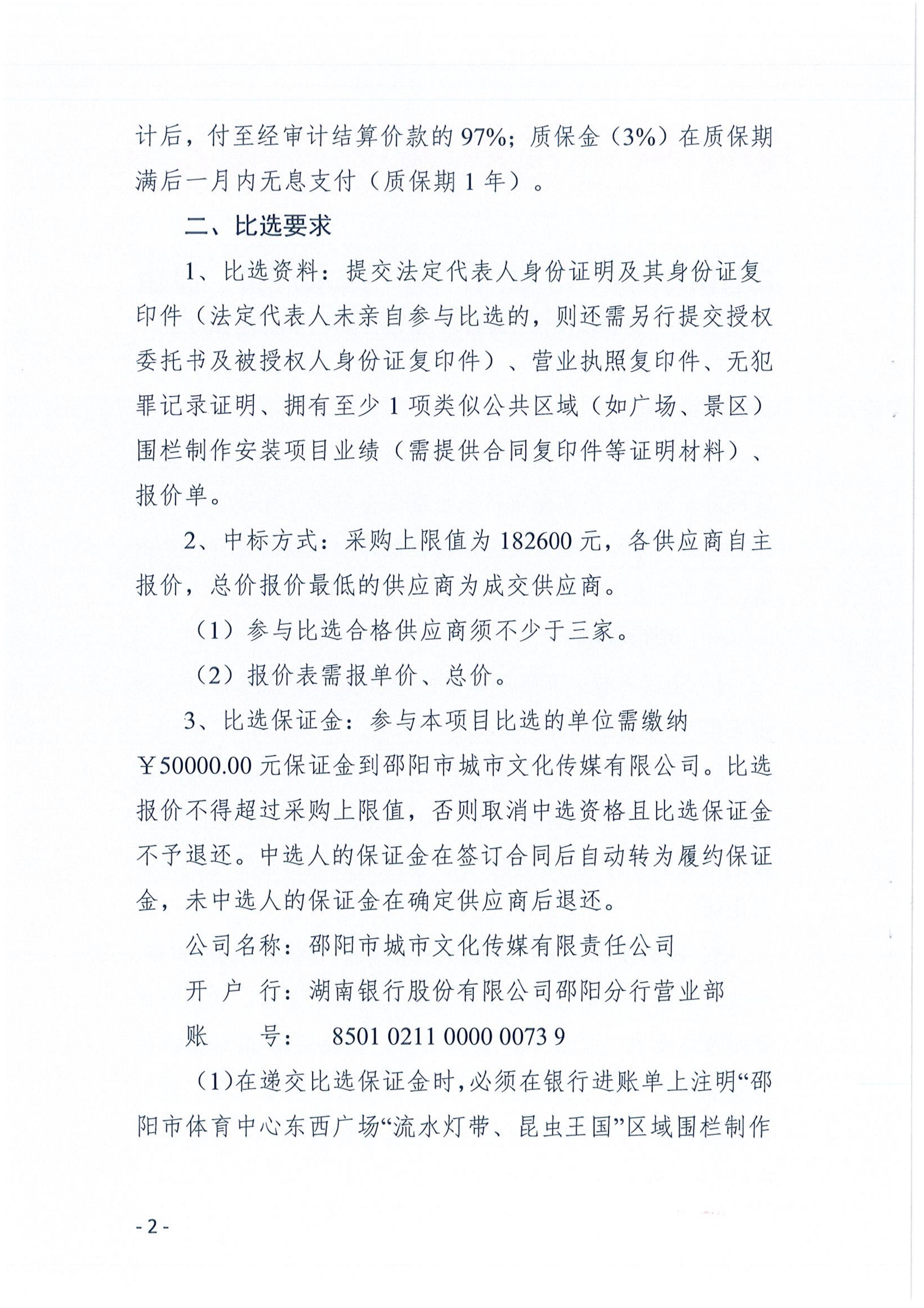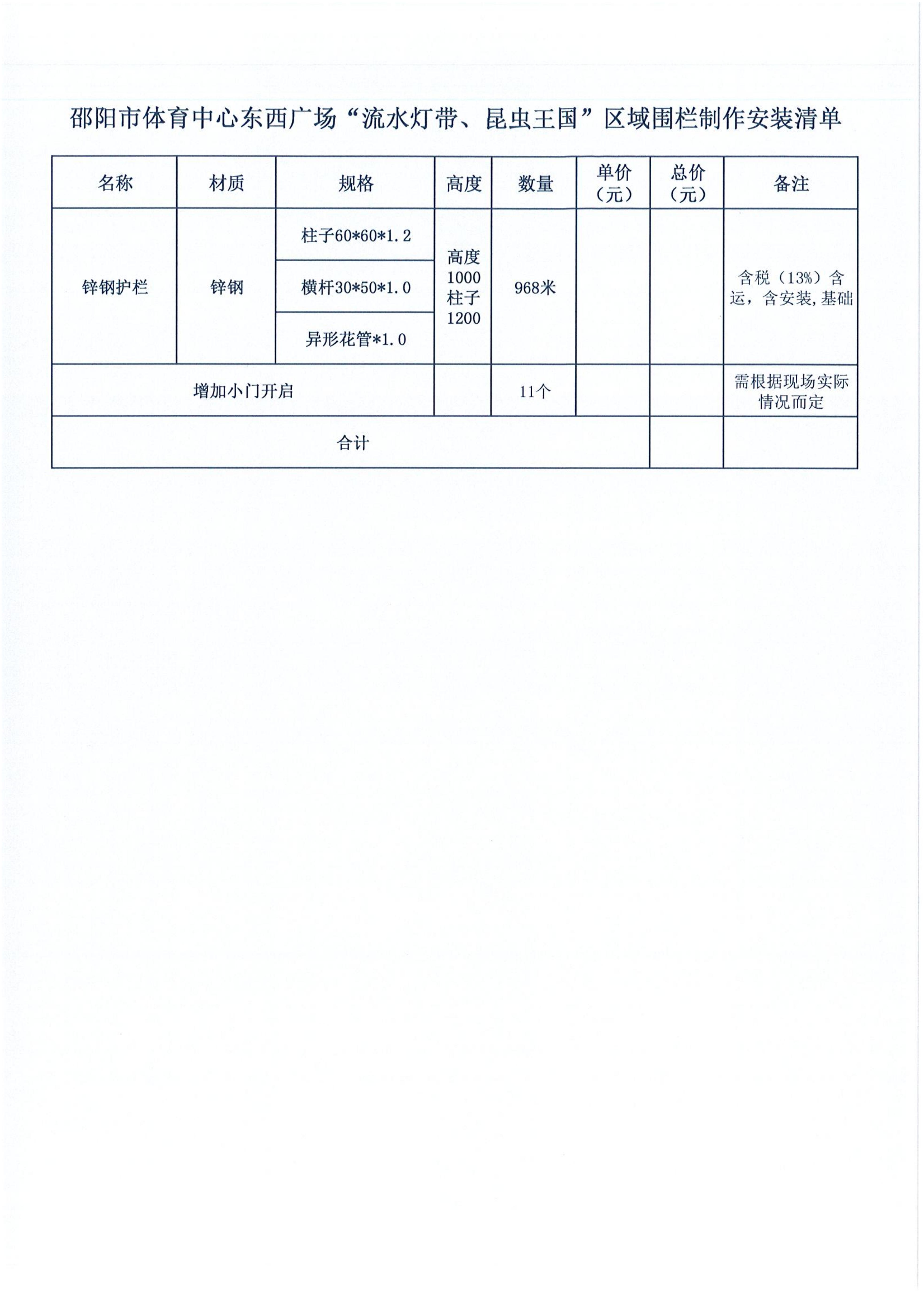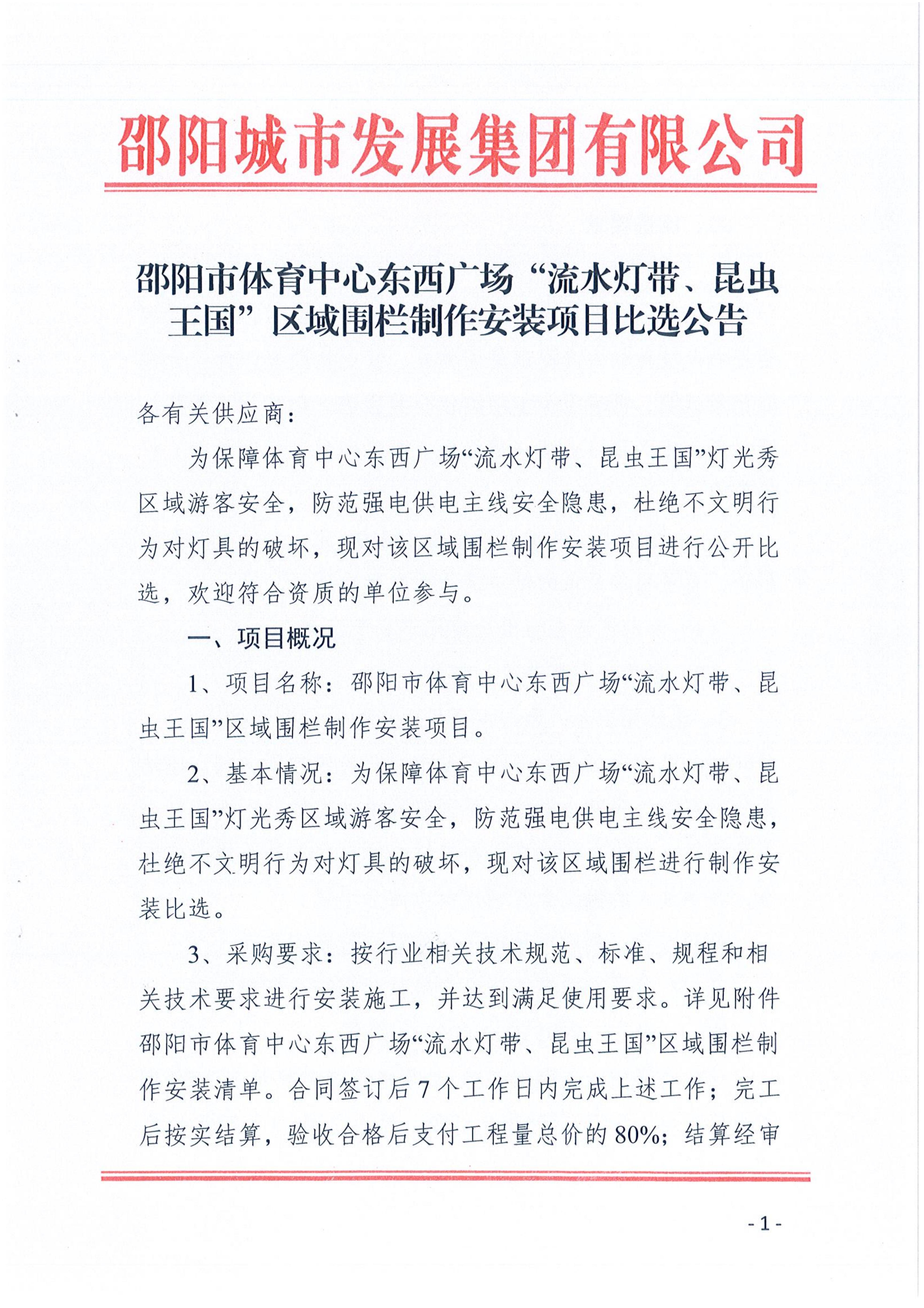 邵陽市體育中心東西廣場“流水燈帶、昆蟲王國”區(qū)域圍欄制作安裝項(xiàng)目比選公告