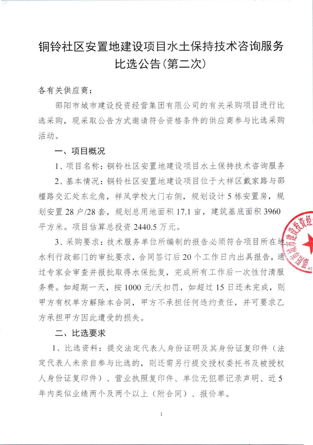 銅鈴社區(qū)安置地水土保持比選公告第二次