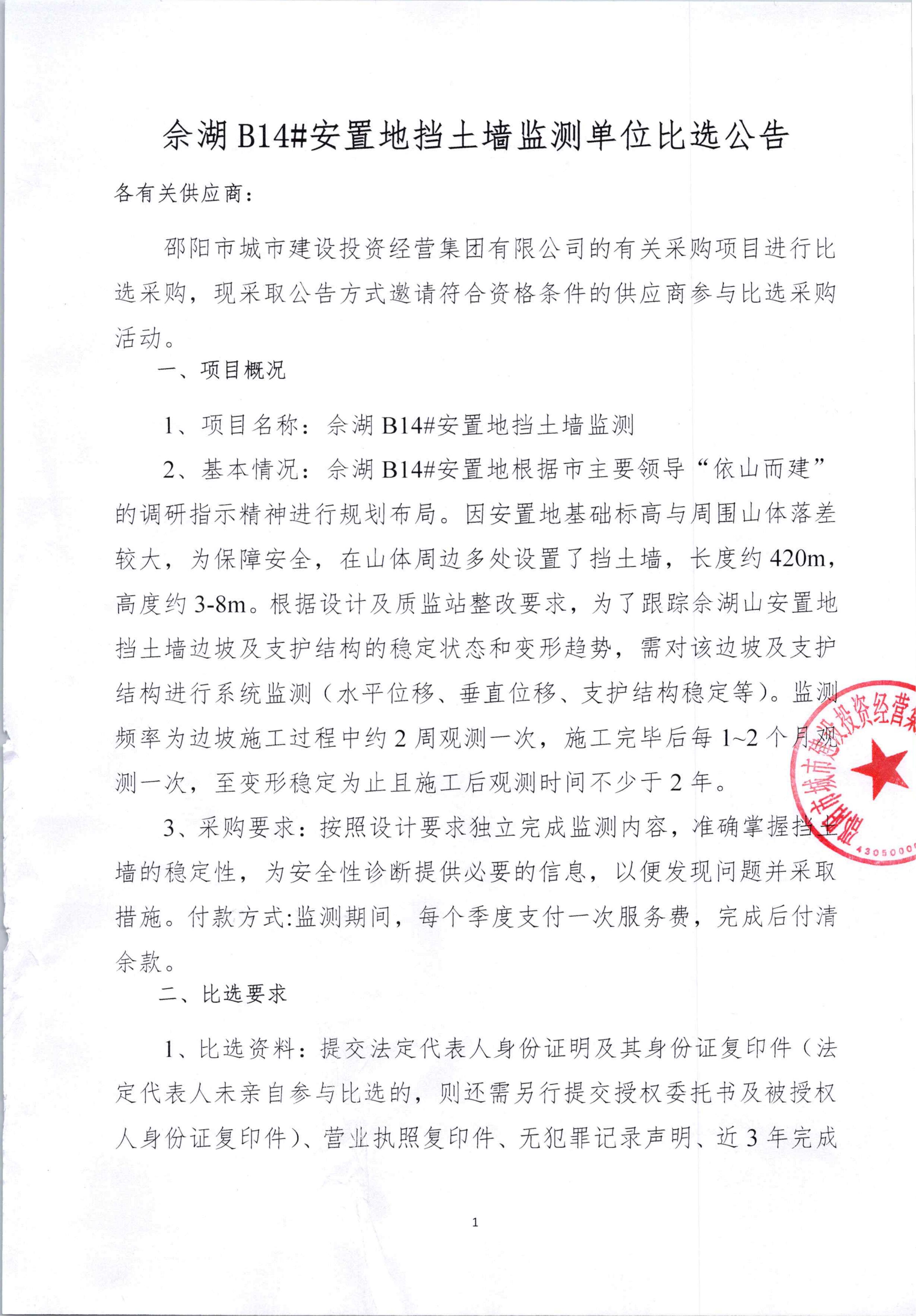 佘湖B14安置地?fù)跬翂ΡO(jiān)測(cè)比選公告